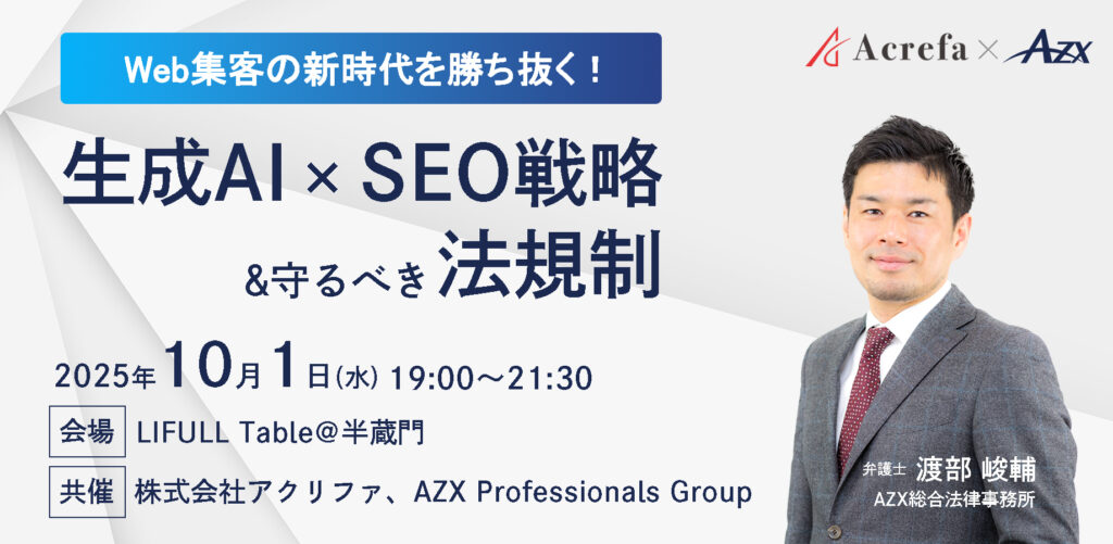 『Web集客の新時代を勝ち抜く!生成AI×SEO戦略&守るべき法規制』